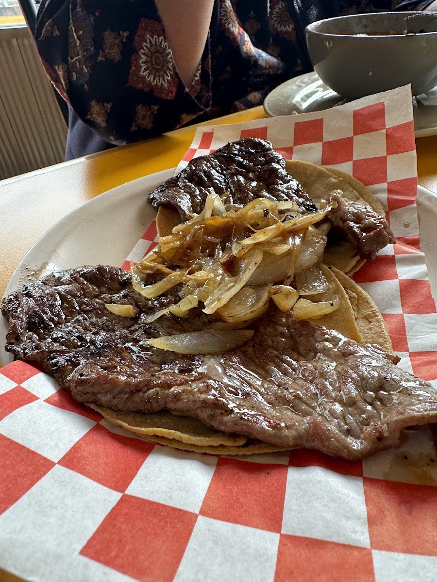 Many visitors come in the evening, when the service is described as particularly welcoming and attentive, giving the place a convivial vibe despite its fast-food rhythm. The food is generally well-seasoned, with especially favorable mentions for the rib eye tacos and traditional sides like frijoles charros. However, some customers note that the care in preparation can vary—certain items like tripa or fresh garnishes don't always hit the mark, and prices suggest diners expect more polished execution.